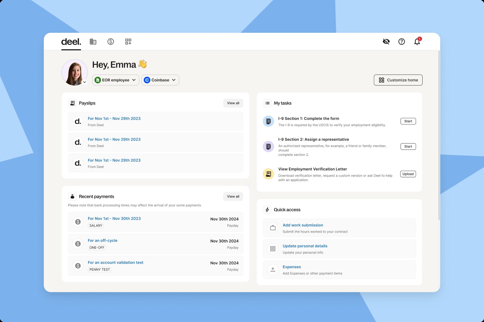 Deel is a global-first people platform that enables companies to hire, relocate, pay, manage, and support talent in 150+ countries through owned infrastructure.