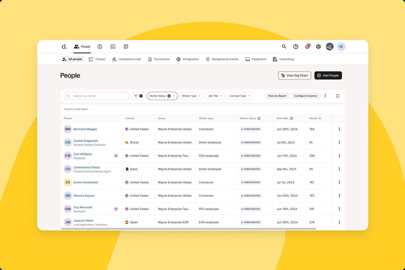 Organizations can hire employees in 130+ countries and contractors in 200+ jurisdictions while maintaining local labor law compliance.