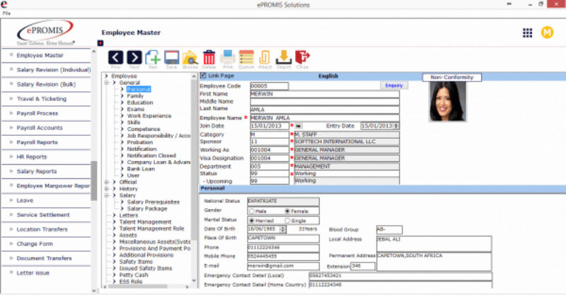 ePROMIS HCM offers a Wages Protection System (WPS) that facilitates the payment of salaries and ensures that payments are made accurately and on time, ensuring payroll is fast and accurate. There are also dynamic reports and business intelligence dashboards to provide insights into a company’s human capital.