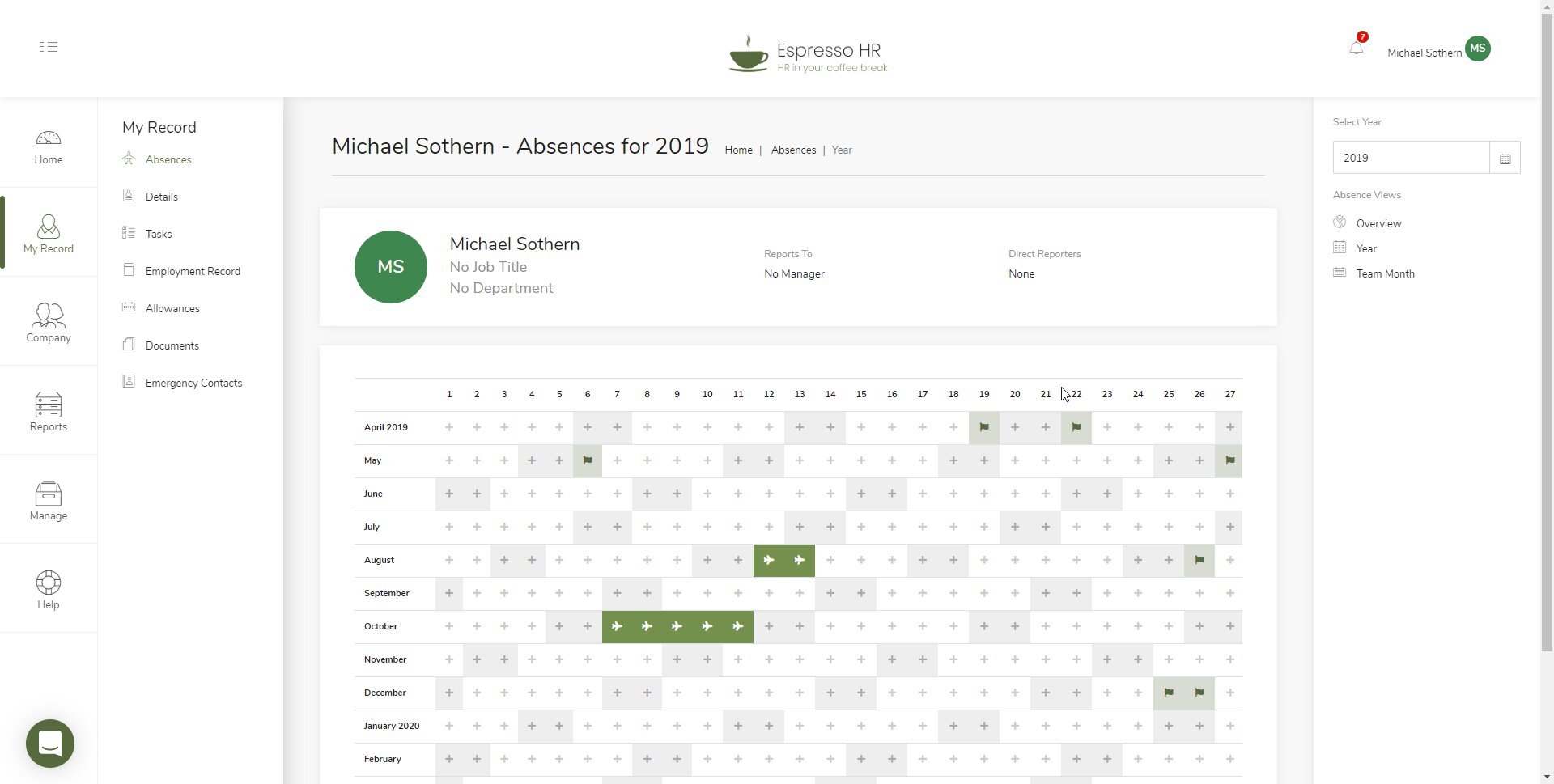 Espresso HR helps free you from the admin requirements of people management so that you can concentrate on running a successful business. HR and the management of people shouldn't be a difficult or time-consuming task for small companies. You and your employees should be spending your time where you can have the most impact. Espresso HR's cloud-based solution offers simple absence management and human resource features that you can complete in minutes rather than hours.