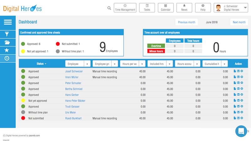 Time recording is possible without significant effort; always have an overview of the working hours of your employees. Jacando Time is much more than just a time-recording tool: it allows project-related hourly billing, informs regularly about the hours worked by the employees, enables a multi-stage approval process, and is also designed for flexible working time models.