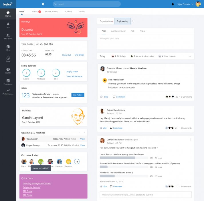 Keka HR is B2BÂ SaaS platform. It is a modern HR and Payroll software for small and medium businesses with a wide range of features like time tracking on internal & external projects, attendance management, leave management, payroll management, performance, etc. It automates all your HR tasks with a single button and improves your overall business productivity.