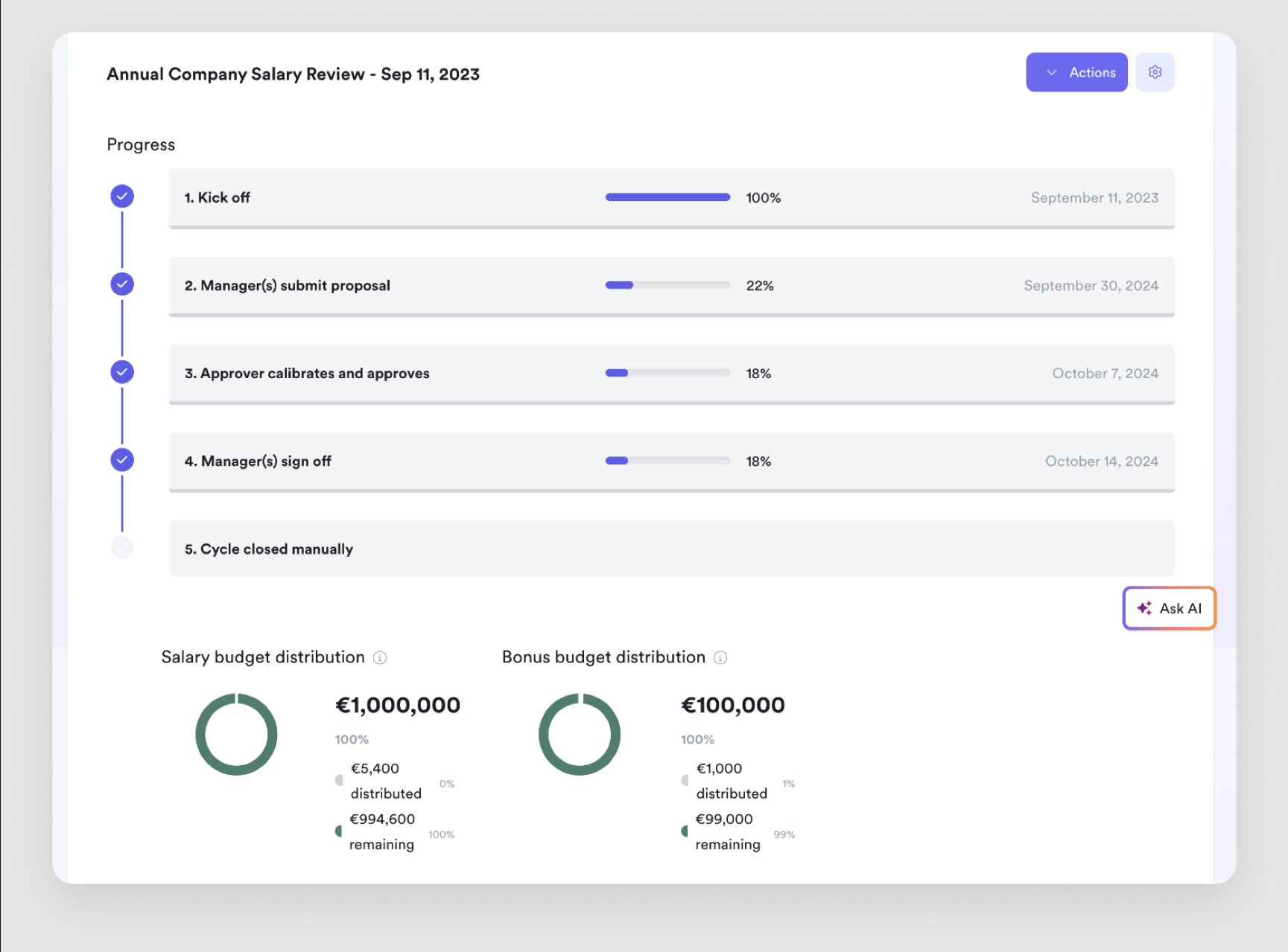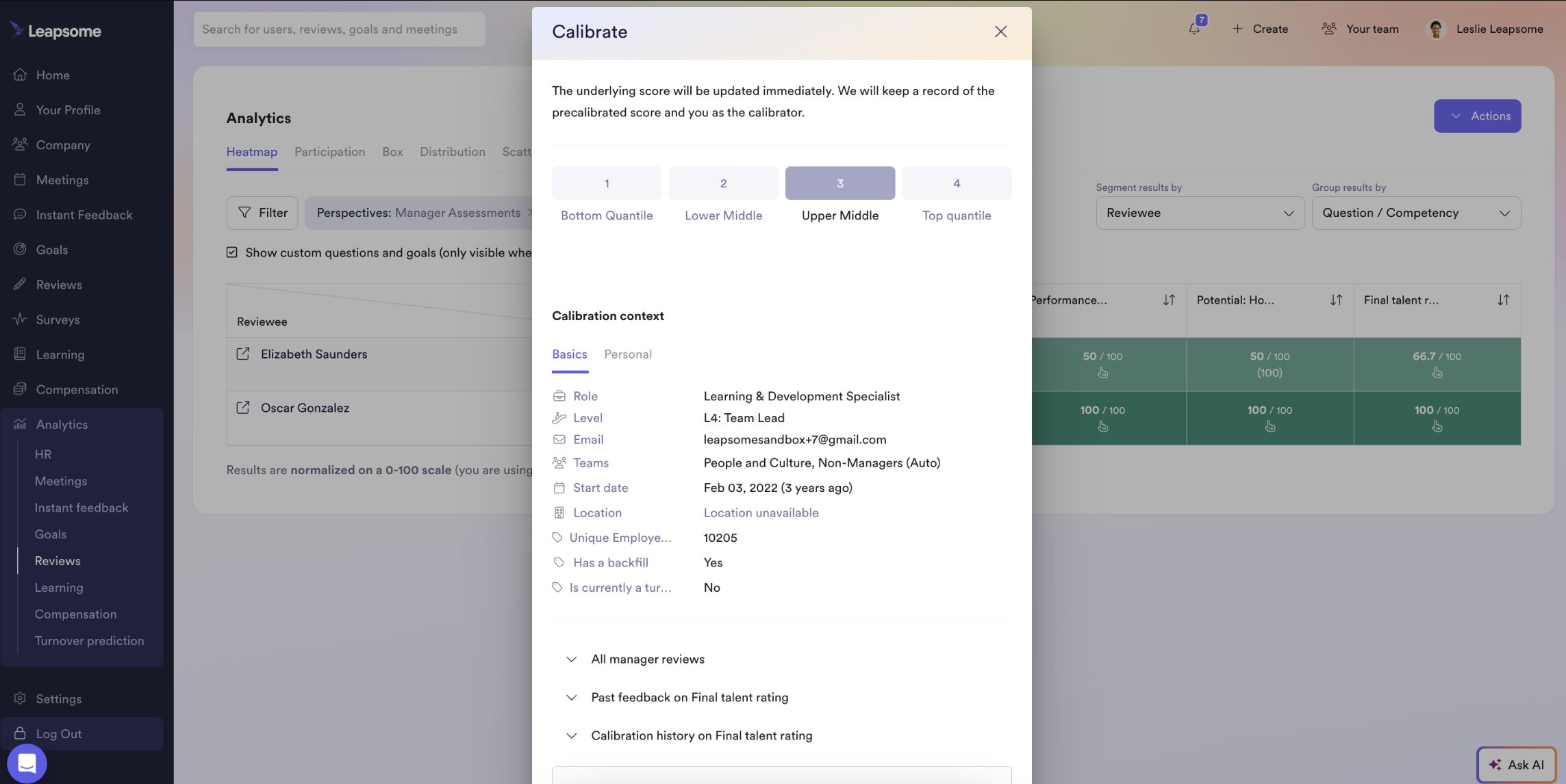 - Leapsome's AI features are built specifically for HR workflows with data privacy and GDPR compliance in mind; AI assistance augments human work rather than automating decisions without oversight.