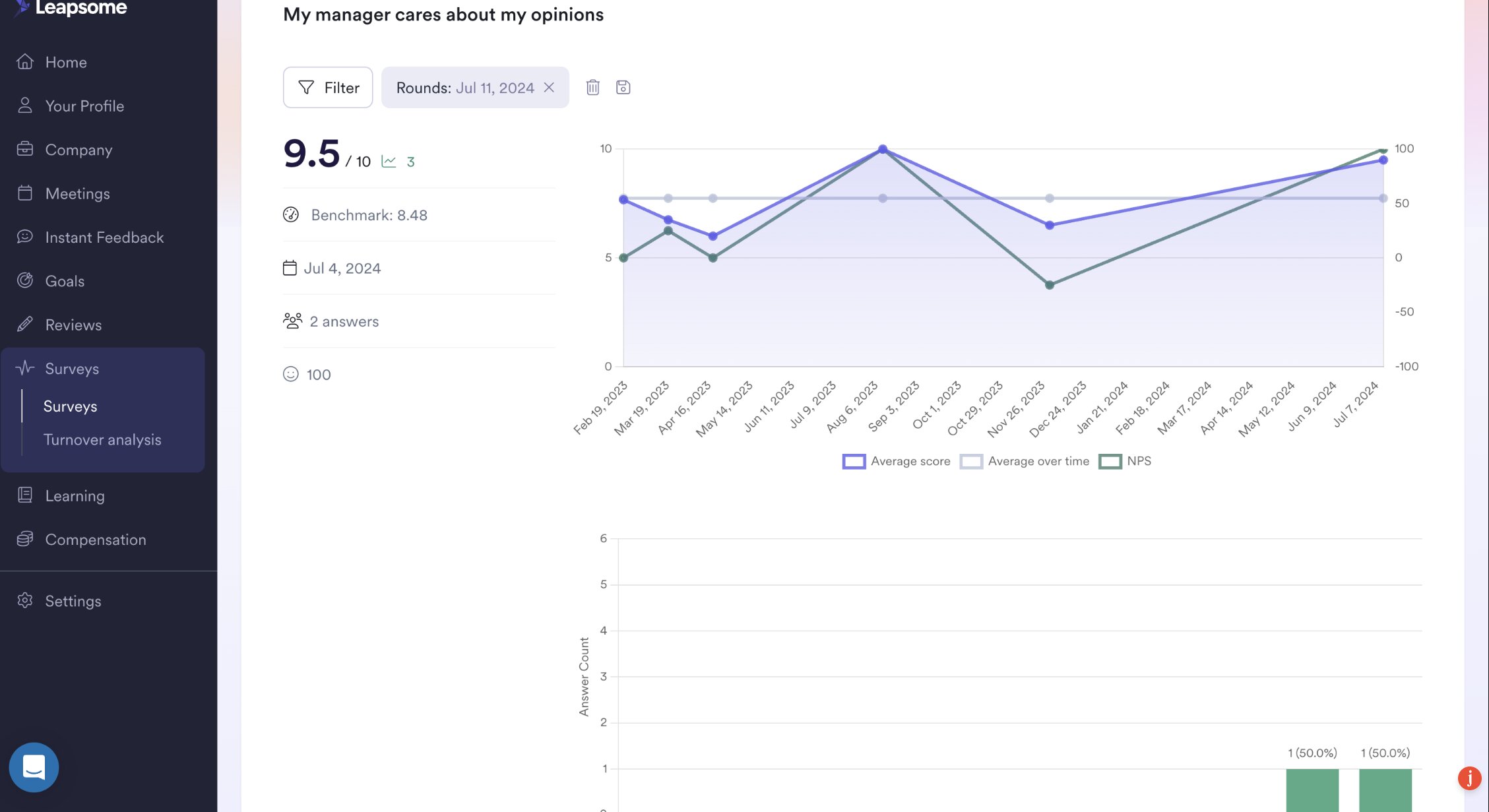 - Leapsome is best suited for teams that want one employee management platform rather than separate tools for feedback, reviews, and 1:1s