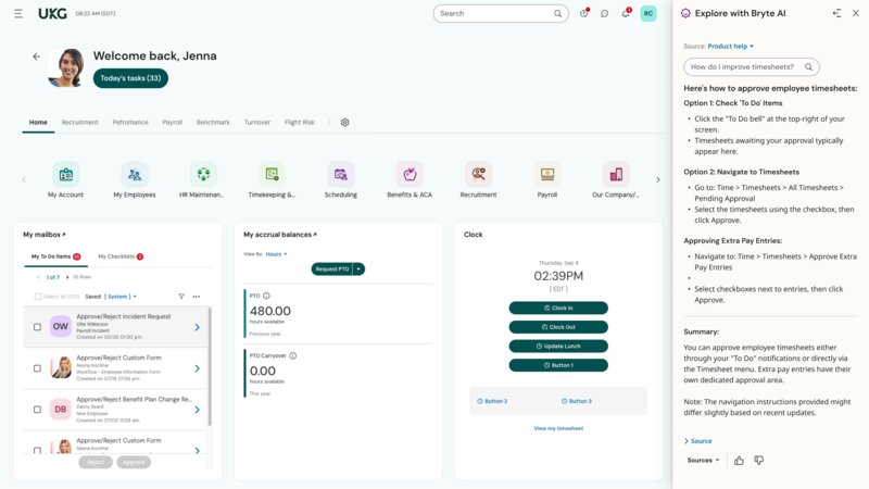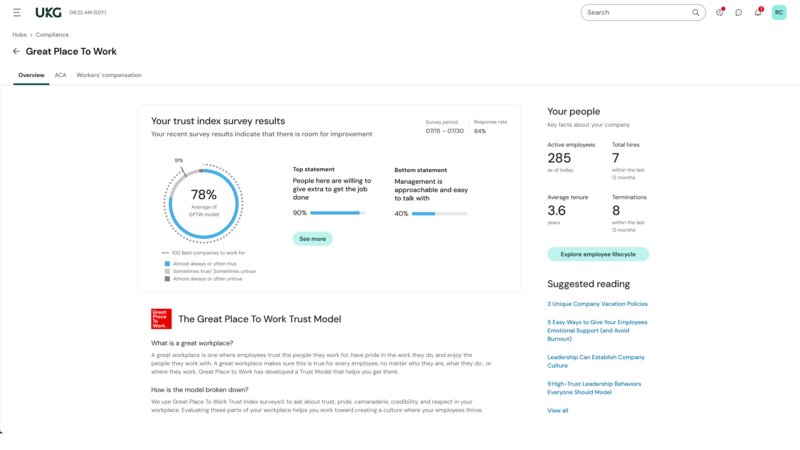 UKG Ready® is a flexible and seamless HR solution that provides a connected people experience to easily manage the entire employee journey from a single solution. Designed for flexibility and ease of use, UKG Ready combines the power of HR, talent, payroll, and time to deliver a personalized, people-centered experience that cuts out busy work, increases efficiency, and helps you maintain compliance.