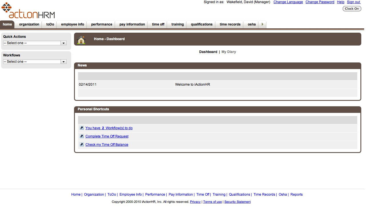 Training for ActionHRM is provided in a “Train-the-trainer” framework - training is provided for application administrators, HR staff and senior managers. These staff members are then encouraged to provide training to other employees where required.