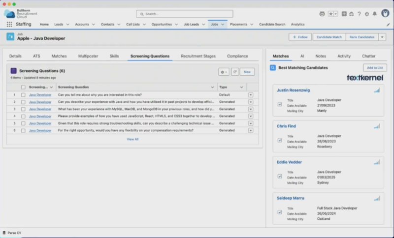 - June 2024: Bullhorn acquires Textkernel, integrating AI parsing and matching tech.