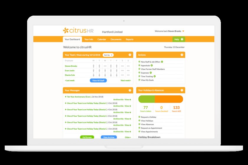citrusHR is an HR software solution for UK businesses. citrusHR is a smart, simple, and cost-effective cloud-based HR software with easy to use, comprehensive self-service that can save you time and stress on every aspect of your day to day HR admin.