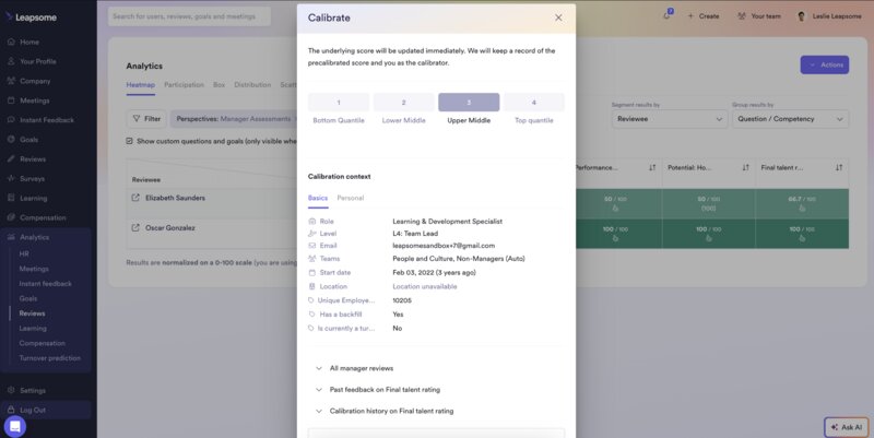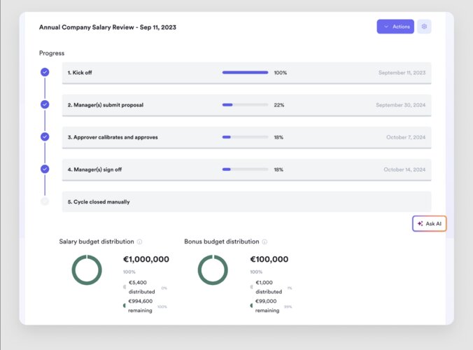 - Leapsome's AI features are built specifically for HR workflows with data privacy and GDPR compliance in mind; AI assistance augments human work rather than automating decisions without oversight.
