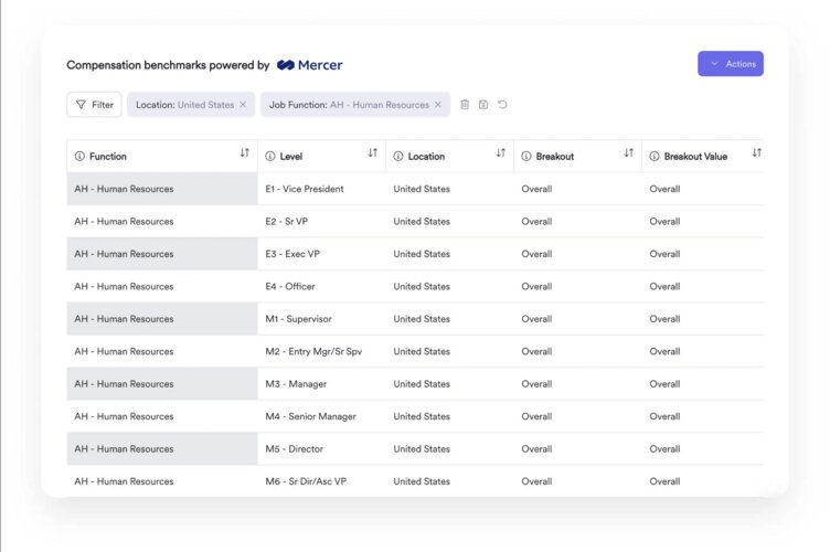 - Surveys and engagement insights: The platform includes engagement and pulse surveys with reporting features that allow HR teams to identify trends at a team or company level. Results can be segmented to help managers understand where follow-up actions may be required.