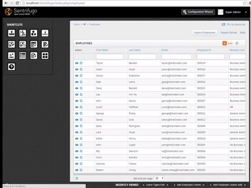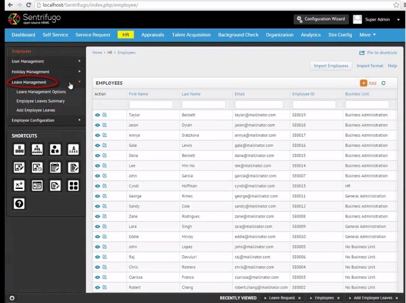 Sentrifugo HRMS is a human resources management platform, available as open-source free software. Built using modular a framework, the HR software can be developed and extended to adapt to the individual business’s needs.