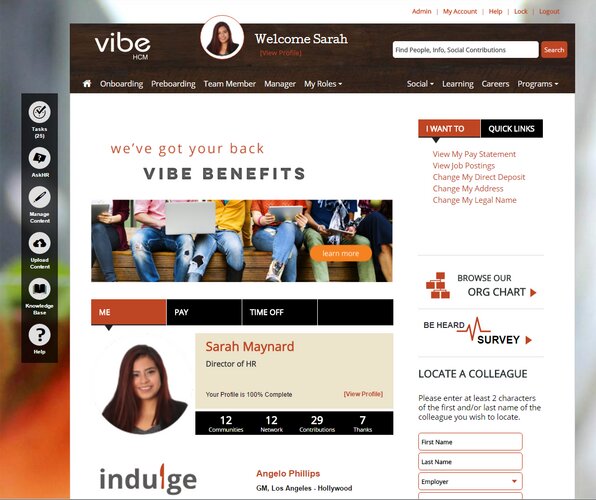 Vibe HCM bills itself as a ‘best of both worlds’ HCM system, which combines transaction and compliance features with a social engagement platform.