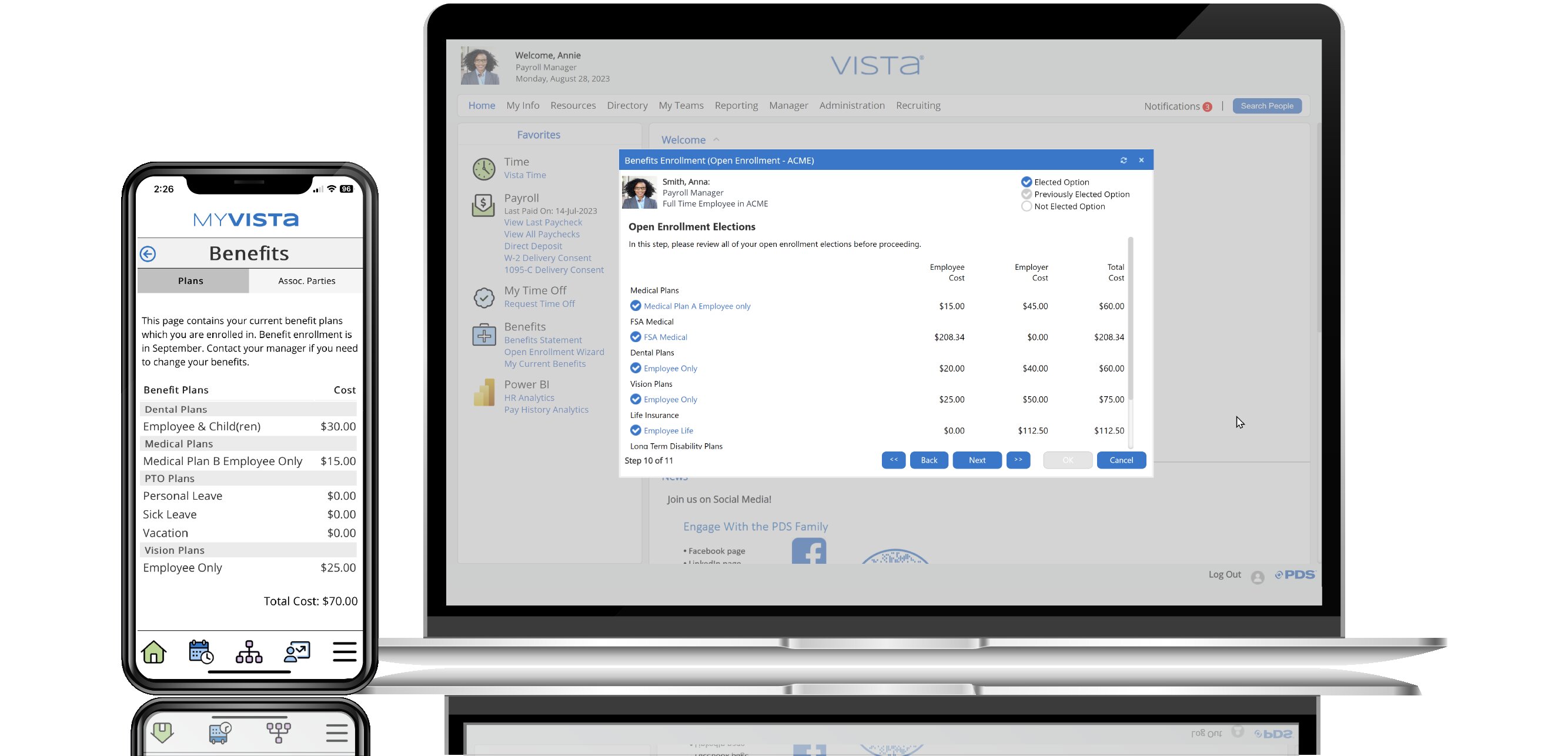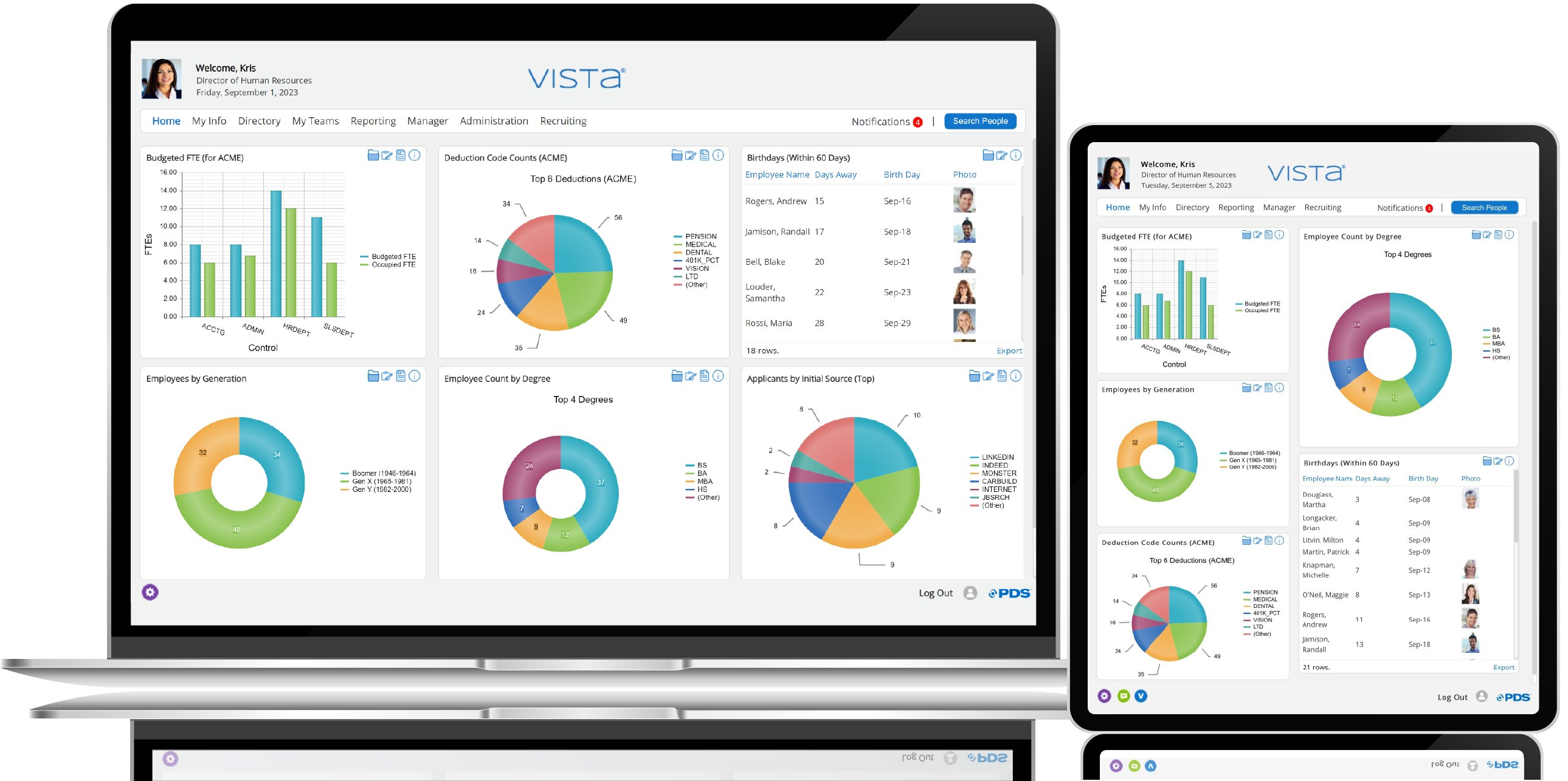 PDS’ Vista is the complete HCM software solution for organizations with employees based in the United States, Canada, or the Caribbean. All the pieces—recruiting, onboarding, human resources, benefits, payroll, time and attendance, self-service, workflow, analytics, mobile and extensive reporting—come together to simplify business practices and processes. Whether you opt for Vista in the cloud or on-premise, PDS' Vista delivers the operations management tools that companies need to monitor and securely manage their HCM environment.