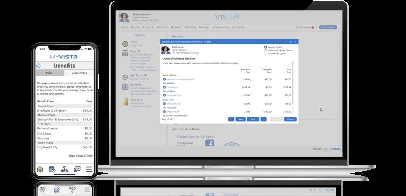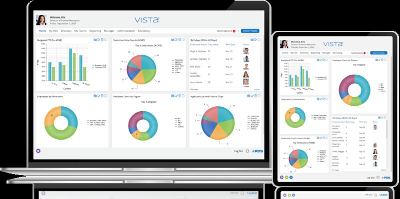 PDS’ Vista is the complete HCM software solution for organizations with employees based in the United States, Canada, or the Caribbean. All the pieces—recruiting, onboarding, human resources, benefits, payroll, time and attendance, self-service, workflow, analytics, mobile and extensive reporting—come together to simplify business practices and processes. Whether you opt for Vista in the cloud or on-premise, PDS' Vista delivers the operations management tools that companies need to monitor and securely manage their HCM environment.